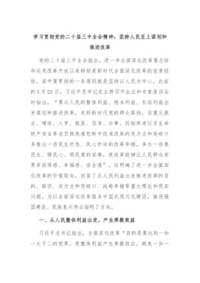 【七哥公文】2024年:学习贯彻党的二十届三中全会精神:坚持人民至上谋划和推进改革+更多免费公文+VX:QiGeGongWen2024
