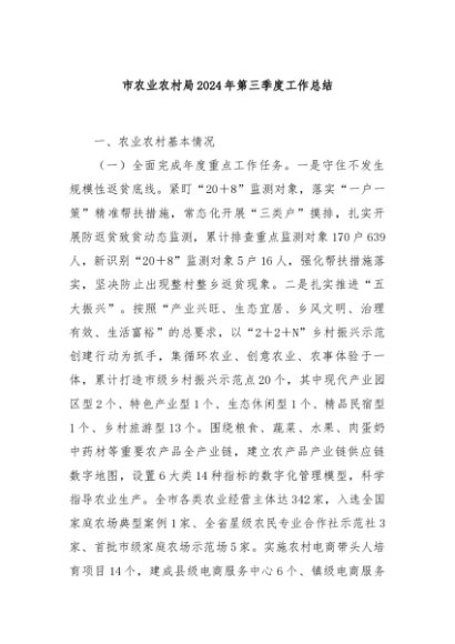 / 【七哥公文】2024年:市农业农村局2024年第三季度工作总结+更多免费公文+VX:QiGeGongWen2024