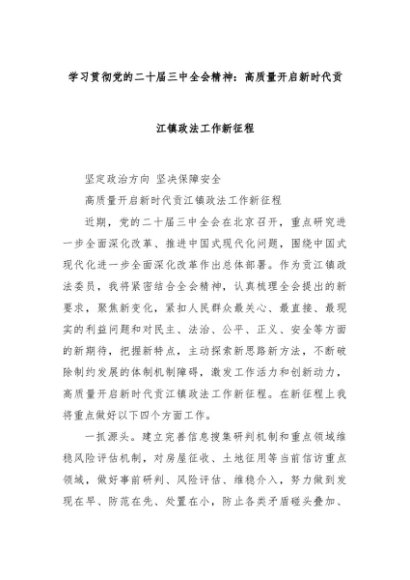 【七哥公文】2024年:学习贯彻党的二十届三中全会精神:高质量开启新时代贡江镇政法工作新征程+更多免费公文+VX:QiGeGongWen2024