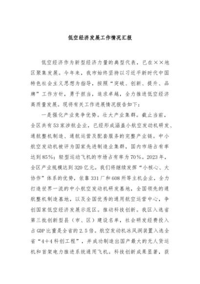 / 【七哥公文】2024年:低空经济发展工作情况汇报+更多免费公文+VX:QiGeGongWen2024