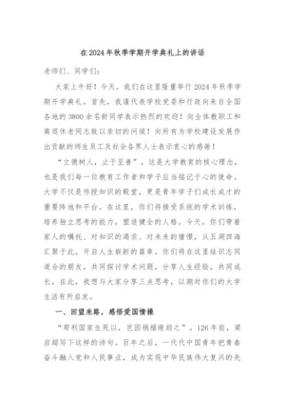 / 【七哥公文】2024年:在2024年秋季学期开学典礼上的讲话+更多免费公文+VX:QiGeGongWen2024