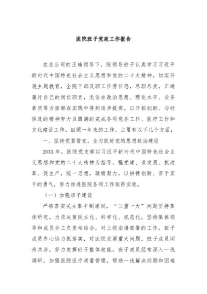 / 【七哥公文】2024年:医院班子党政工作报告+更多免费公文+VX:QiGeGongWen2024