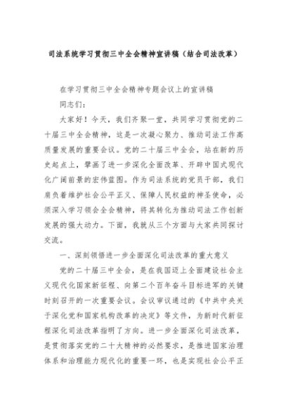 【七哥公文】2024年:司法系统学习贯彻三中全会精神宣讲稿(结合司法改革)+更多免费公文+VX:QiGeGongWen2024
