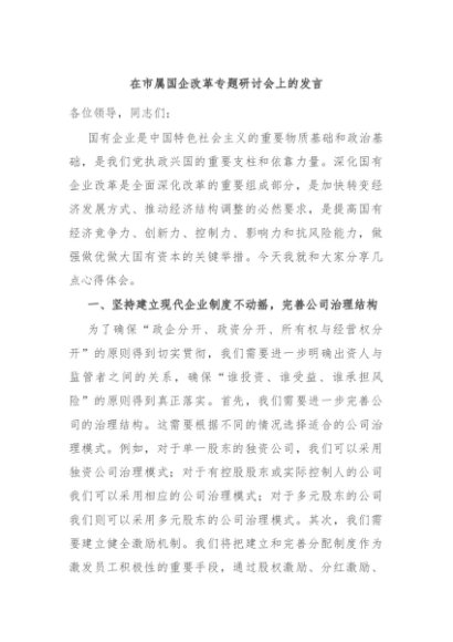 / 【七哥公文】2024年:在市属国企改革专题研讨会上的发言+更多免费公文+VX:QiGeGongWen2024