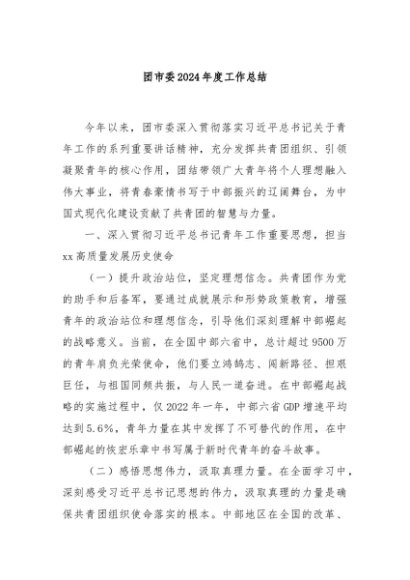 / 【七哥公文】2024年:团市委2024年度工作总结+更多免费公文+VX:QiGeGongWen2024