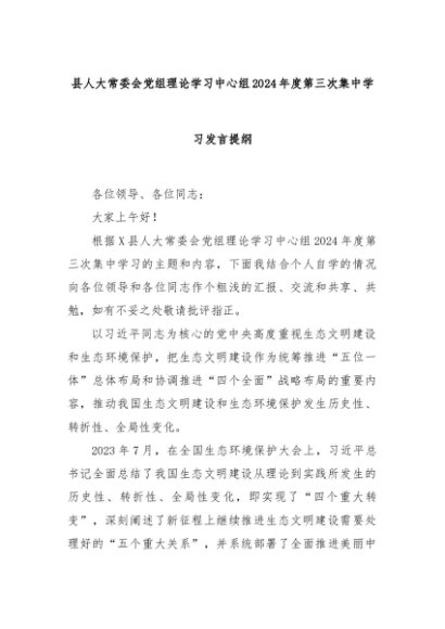 【七哥公文】2024年:县人大常委会党组理论学习中心组2024年度第三次集中学习发言提纲+更多免费公文+VX:QiGeGongWen2024