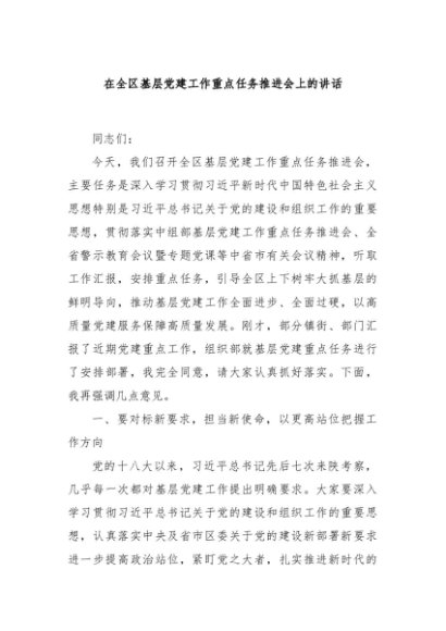 / 【七哥公文】2024年:在全区基层党建工作重点任务推进会上的讲话+更多免费公文+VX:QiGeGongWen2024