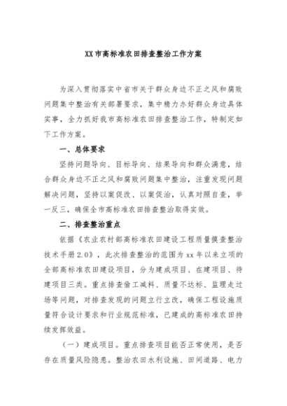 【七哥公文】2024年:XX市高标准农田排查整治工作方案+更多免费公文+VX:QiGeGongWen2024