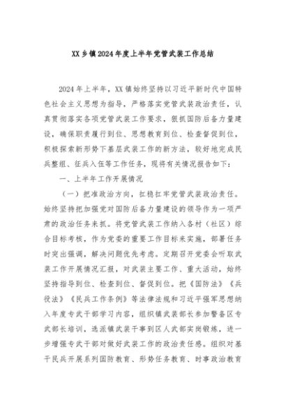 / 【七哥公文】2024年:XX乡镇2024年度上半年党管武装工作总结+更多免费公文+VX:QiGeGongWen2024