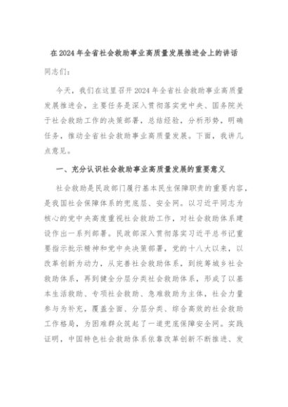 【七哥公文】2024年:在2024年全省社会救助事业高质量发展推进会上的讲话+更多免费公文+VX:QiGeGongWen2024