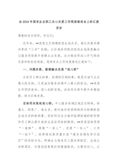 【七哥公文】2024年:在2024年国有企业职工关心关爱工作现场推进会上的汇报发言+更多免费公文+VX:QiGeGongWen2024