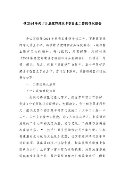 【七哥公文】2024年:镇2024年关于开展党的建设考核自查工作的情况报告+更多免费公文+VX:QiGeGongWen2024