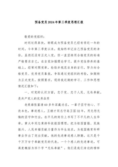 / 【七哥公文】2024年:预备党员2024年第三季度思想汇报+更多免费公文+VX:QiGeGongWen2024