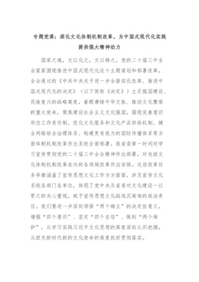 【七哥公文】2024年:专题党课:深化文化体制机制改革,为中国式现代化实践提供强大精神动力+更多免费公文+VX:QiGeGongWen2024