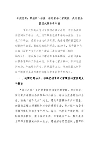 【七哥公文】2024年:专题党课:聚焦四个维度,推进青年之家建设,提升基层团组织服务青年能+更多免费公文+VX:QiGeGongWen2024