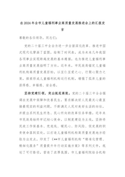 【七哥公文】2024年:在2024年全市儿童福利事业高质量发展推进会上的汇报发言+更多免费公文+VX:QiGeGongWen2024