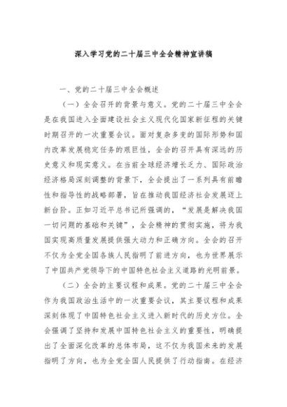 / 【七哥公文】2024年:深入学习党的二十届三中全会精神宣讲稿+更多免费公文+VX:QiGeGongWen2024