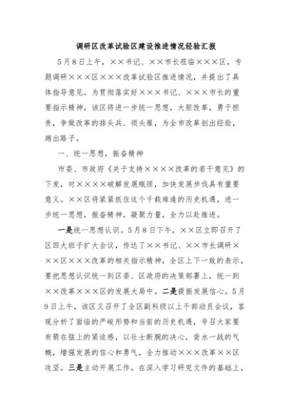 / 【七哥公文】2024年:调研区改革试验区建设推进情况经验汇报+更多免费公文+VX:QiGeGongWen2024