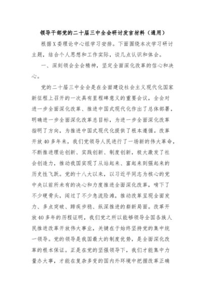 / 【七哥公文】2024年:领导干部党的二十届三中全会研讨发言材料(通用)+更多免费公文+VX:QiGeGongWen2024