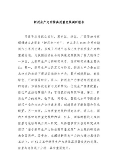 / 【七哥公文】2024年:新质生产力助推高质量发展调研报告+更多免费公文+VX:QiGeGongWen2024