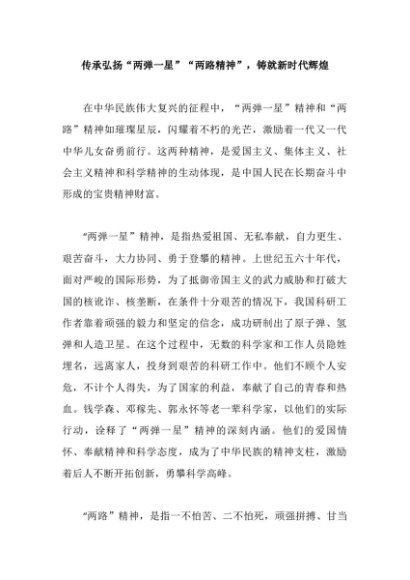【七哥公文】2024年:传承弘扬“两弹一星”“两路精神”,铸就新时代辉煌+更多免费公文+VX:QiGeGongWen2024
