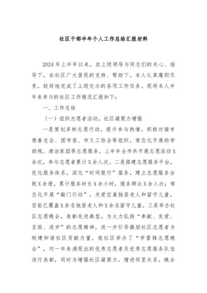 / 【七哥公文】2024年:社区干部半年个人工作总结汇报材料+更多免费公文+VX:QiGeGongWen2024