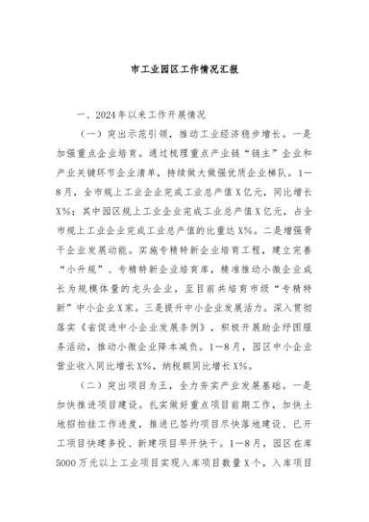 / 【七哥公文】2024年:市工业园区工作情况汇报+更多免费公文+VX:QiGeGongWen2024