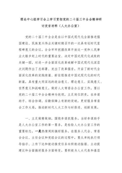 【七哥公文】2024年:理论中心组学习会上学习贯彻党的二十届三中全会精神研讨发言材料(人大办公室)+更多免费公文+VX:QiGeGongWen2024