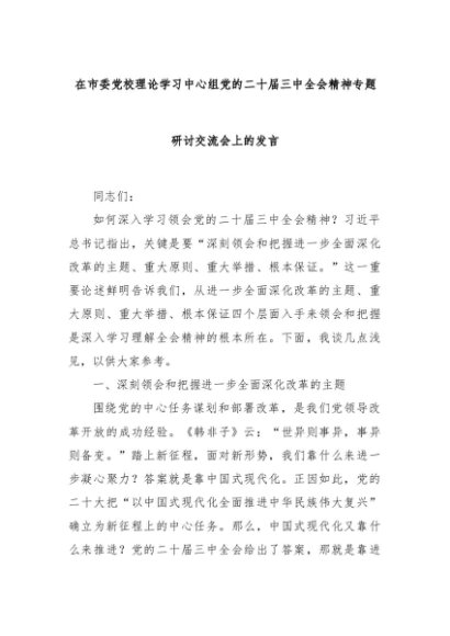 【七哥公文】2024年:在市委党校理论学习中心组党的二十届三中全会精神专题研讨交流会上的发言+更多免费公文+VX:QiGeGongWen2024