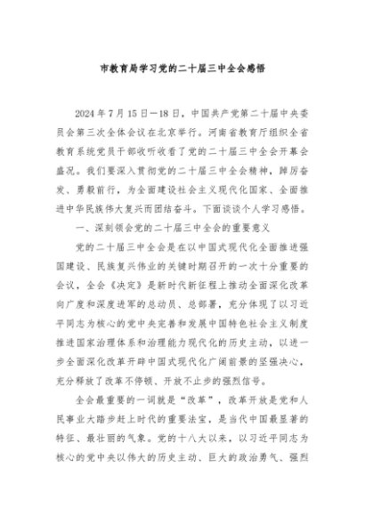 / 【七哥公文】2024年:市教育局学习党的二十届三中全会感悟+更多免费公文+VX:QiGeGongWen2024