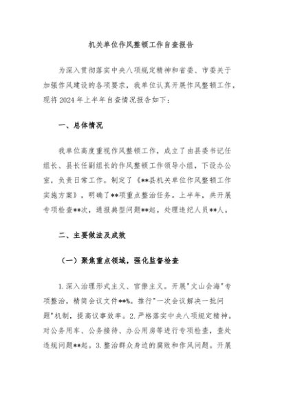/ 【七哥公文】2024年:机关单位作风整顿工作自查报告+更多免费公文+VX:QiGeGongWen2024