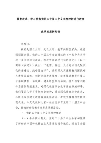 【七哥公文】2024年:教育改革:学习贯彻党的二十届三中全会精神新时代教育改革发展新路径+更多免费公文+VX:QiGeGongWen2024