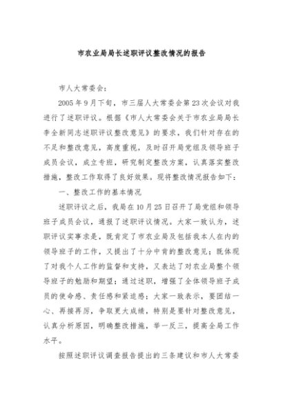 / 【七哥公文】2024年:市农业局局长述职评议整改情况的报告+更多免费公文+VX:QiGeGongWen2024