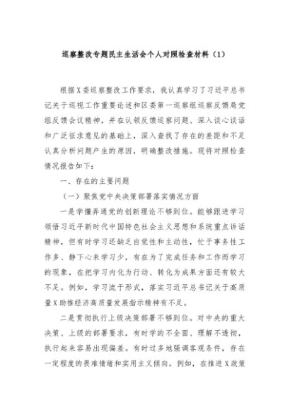 / 【七哥公文】2024年:巡察整改专题民主生活会个人对照检查材料(1)+更多免费公文+VX:QiGeGongWen2024