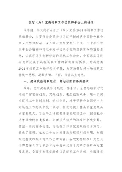 / 【七哥公文】2024年:在厅(局)党委巡察工作动员部署会上的讲话+更多免费公文+VX:QiGeGongWen2024