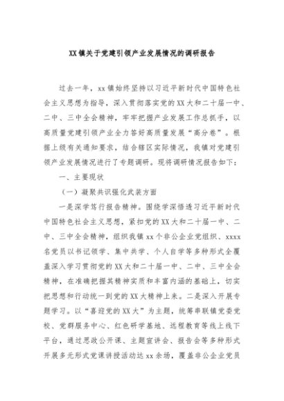 / 【七哥公文】2024年:XX镇关于党建引领产业发展情况的调研报告+更多免费公文+VX:QiGeGongWen2024