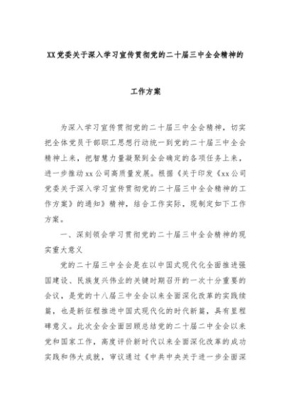 【七哥公文】2024年:XX党委关于深入学习宣传贯彻党的二十届三中全会精神的工作方案+更多免费公文+VX:QiGeGongWen2024