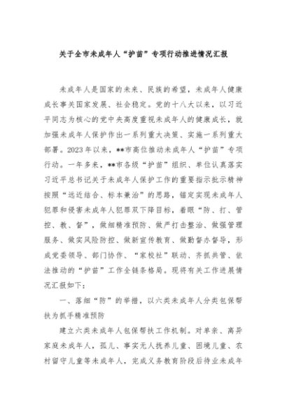 / 【七哥公文】2024年:关于全市未成年人“护苗”专项行动推进情况汇报+更多免费公文+VX:QiGeGongWen2024