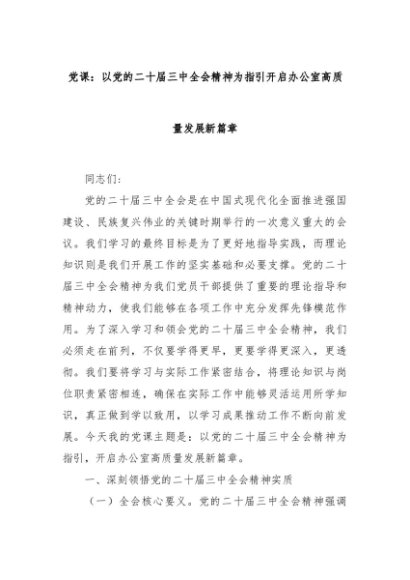 【七哥公文】2024年:党课:以党的二十届三中全会精神为指引开启办公室高质量发展新篇章+更多免费公文+VX:QiGeGongWen2024