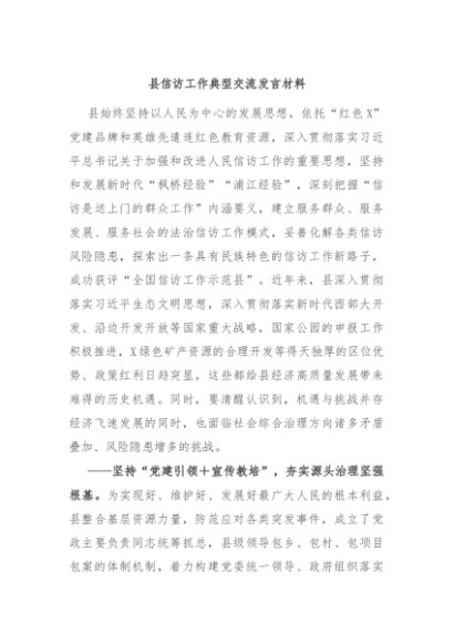 / 【七哥公文】2024年:县信访工作典型交流发言材料+更多免费公文+VX:QiGeGongWen2024