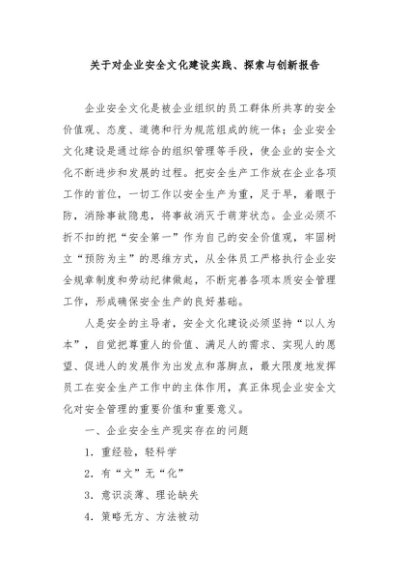 / 【七哥公文】2024年:关于对企业安全文化建设实践、探索与创新报告+更多免费公文+VX:QiGeGongWen2024