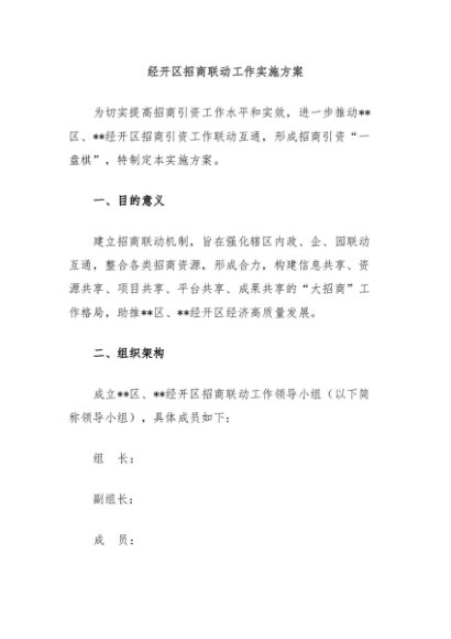 【七哥公文】2024年:经开区招商联动工作实施方案+更多免费公文+VX:QiGeGongWen2024
