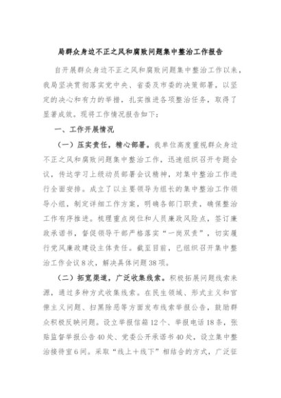 / 【七哥公文】2024年:局群众身边不正之风和腐败问题集中整治工作报告+更多免费公文+VX:QiGeGongWen2024