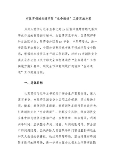 / 【七哥公文】2024年:市体育领域打通消防“生命通道”工作实施方案+更多免费公文+VX:QiGeGongWen2024