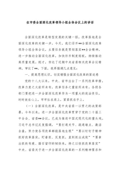 / 【七哥公文】2024年:在市委全面深化改革领导小组全体会议上的讲话+更多免费公文+VX:QiGeGongWen2024