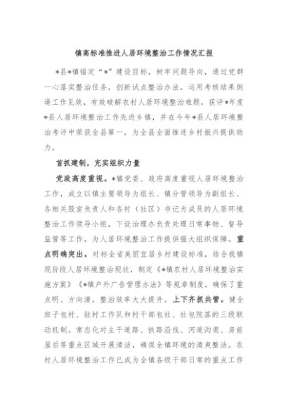 / 【七哥公文】2024年:镇高标准推进人居环境整治工作情况汇报+更多免费公文+VX:QiGeGongWen2024