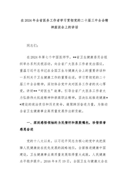 【七哥公文】2024年:在2024年全省医务工作者学习贯彻党的二十届三中全会精神座谈会上的讲话+更多免费公文+VX:QiGeGongWen2024