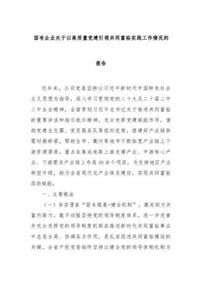 【七哥公文】2024年:国有企业关于以高质量党建引领共同富裕实践工作情况的报告+更多免费公文+VX:QiGeGongWen2024