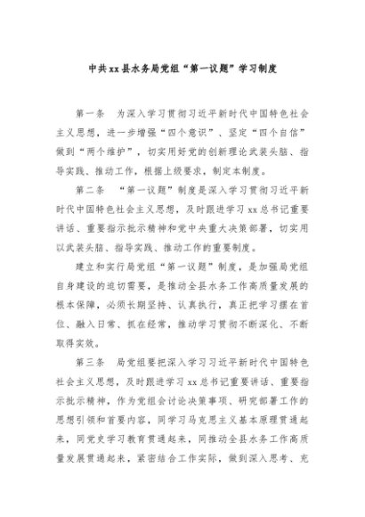 / 【七哥公文】2024年:中共xx县水务局党组“第一议题”学习制度+更多免费公文+VX:QiGeGongWen2024