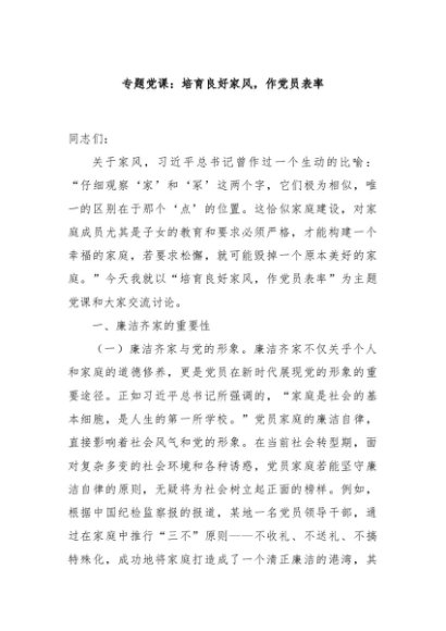 / 【七哥公文】2024年:专题党课:培育良好家风,作党员表率+更多免费公文+VX:QiGeGongWen2024